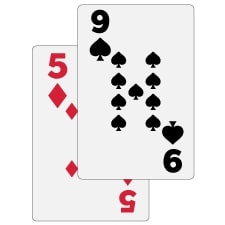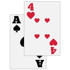 El croupier te reparte un As y un 4, así que tienes una mano blanda, que puede valer 5 o 15. Su carta abierta es un 9.