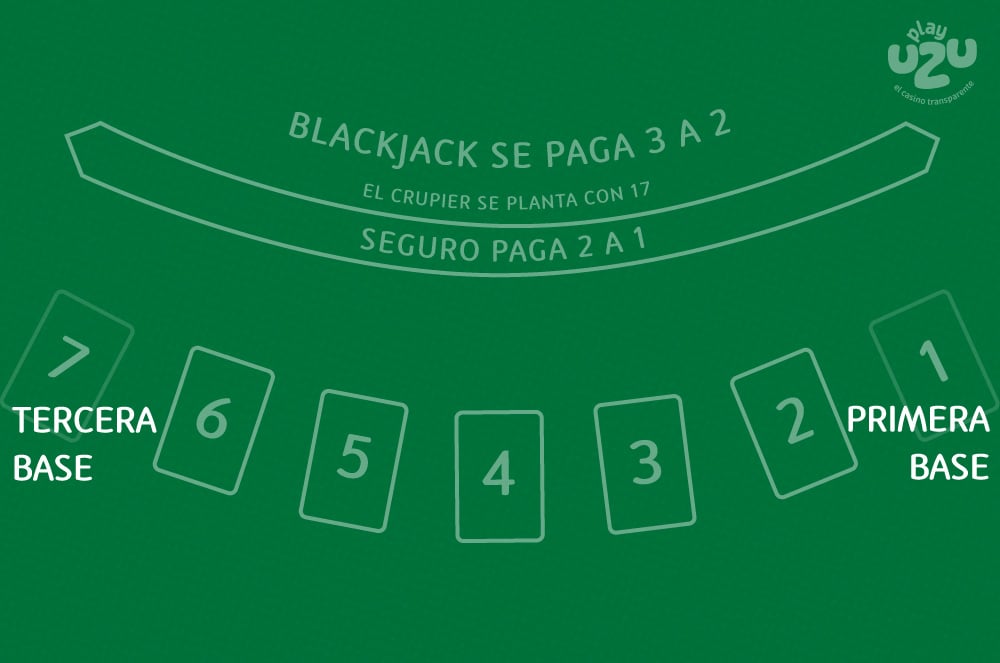 Estos términos, heredados del baseball, hacen referencia a tu posición en la mesa. La primera base es el asiento a la izquierda del crupier, el que recibe primero las cartas, y el primero en actuar.