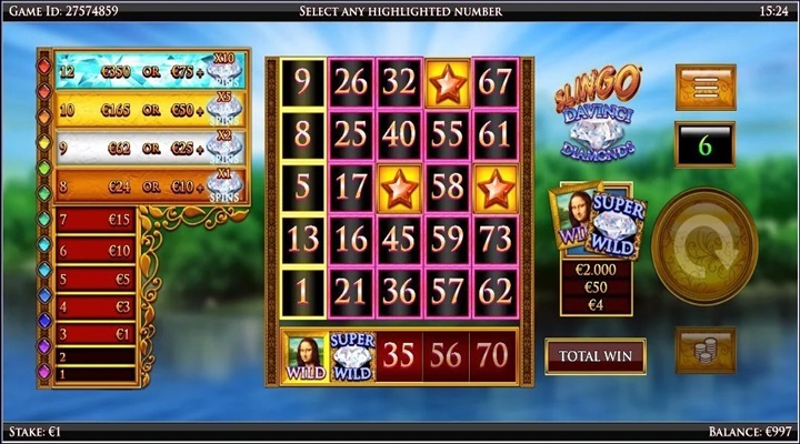 Está función especial se presenta al momento en el que el jugador logra conseguir repetidamente el símbolo de Comodín en la slot Slingo Davinci Diamonds.